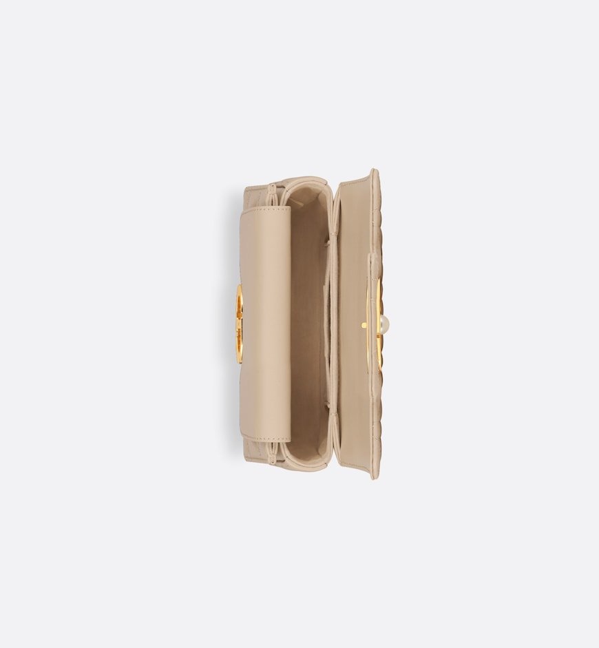 New for Summer 2024, the Dior Jolie Top Handle bag presents an elegant and functional design. It is crafted in powder beige calfskin with Cannage stitching and features a double flap enhanced by a CD signature embellished with a white resin pearl, as well as three compartments and a zip pocket to accommodate all the essentials, day or evening. The removable top handle is completed by a