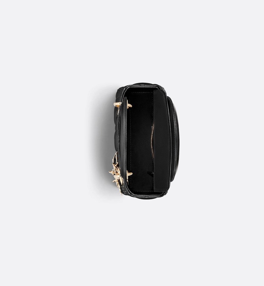 The Lady Dior bag epitomizes the House’s vision of elegance and beauty. Refined and sleek, the timeless creation is crafted in black lambskin and covered with Cannage stitching, creating an instantly recognizable quilted texture. The pale gold-finish metal D.I.O.R. charms embellish and illuminate its silhouette. Featuring a removable chain shoulder strap, the miniature Lady Dior bag can be carried by hand or