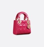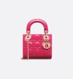 The Lady Dior bag epitomizes Dior’s vision of elegance and beauty. Sleek and refined, the timeless style is crafted in passion pink patent calfskin with Cannage stitching, creating the instantly recognizable quilted texture, while the pale gold-finish metal D.I.O.R. charms further embellish its silhouette. Featuring a removable chain strap, the miniature Lady Dior bag can be carried by hand or crossbody as an ideal