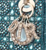 The Lady Dior bag epitomizes Dior’s vision of elegance and beauty. It demonstrates the House’s unique leather craftsmanship and is offered in celestial blue satin, embroidered with a multitude of beads in a hallmark Cannage-motif design, while the handles are made with tonal metallic calfskin. The pale gold-finish metal D.I.O.R. charms are adorned with white crystals and further embellish its silhouette. The miniature style, with its removable chain shoulder strap, can be carried by hand or worn crossbody and will be the ideal evening companion.