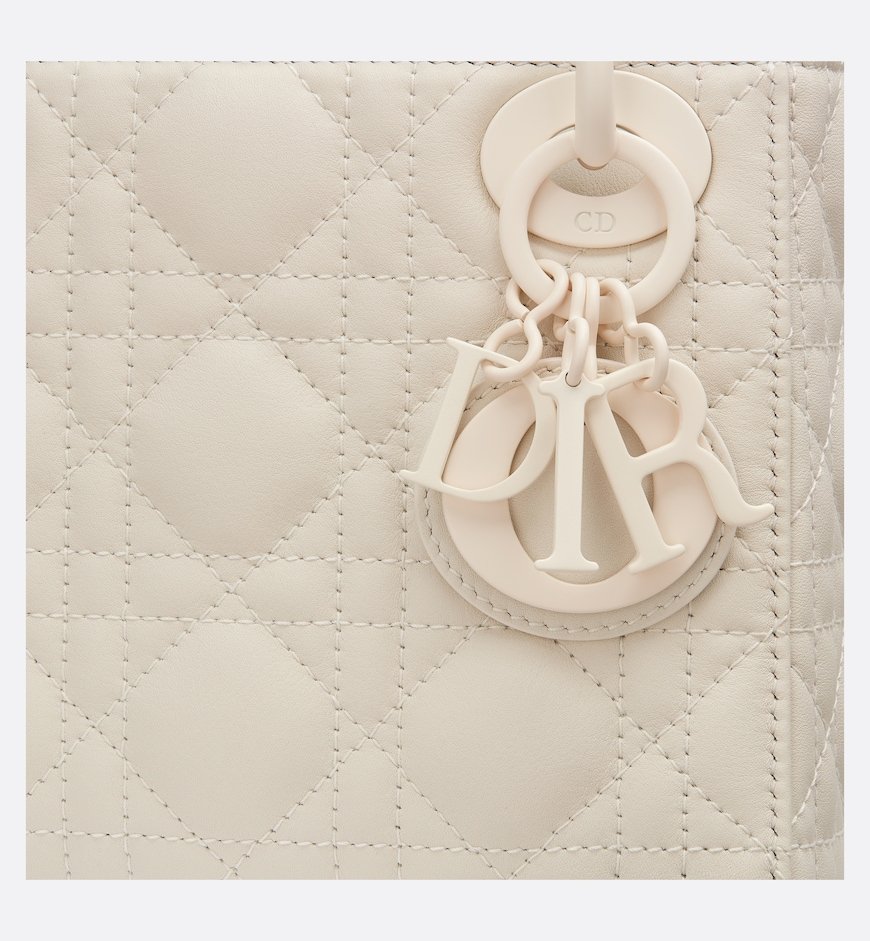 The Lady Dior bag epitomizes the House’s vision of elegance and beauty. Sleek and refined, the timeless yet relevant style is crafted in latte ultramatte calfskin with Cannage stitching, creating the instantly recognizable quilted texture. The tonal metal D.I.O.R. charms embellish and illuminate its silhouette. Featuring a removable chain shoulder strap, the miniature Lady Dior bag can be carried by hand, worn over the shoulder or crossbody as an ideal evening companion.