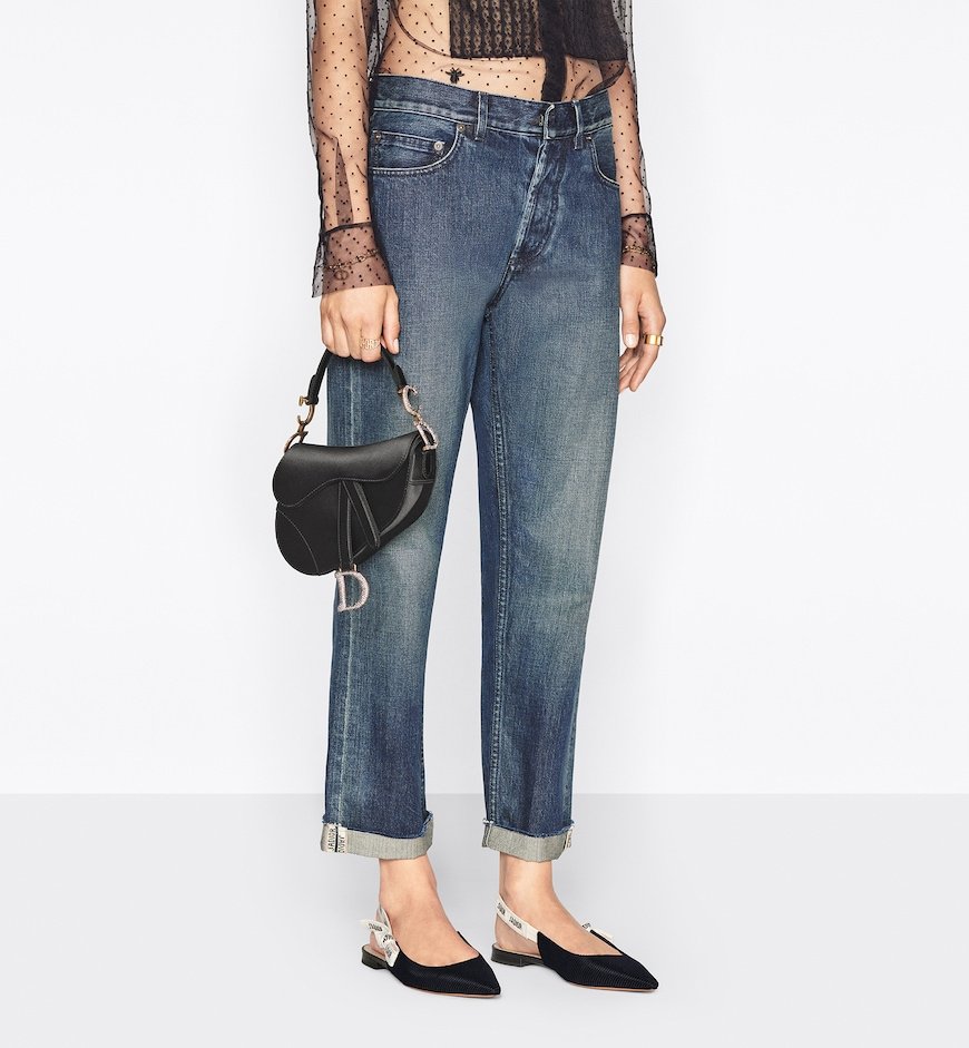 Maria Grazia Chiuri brings a fresh update to the iconic Saddle bag. Crafted in golden saddle grained calfskin, the legendary design features a Saddle flap with a D stirrup strap and magnetic pull, as well as an antique gold-finish metal CD signature on either side of the handle. Equipped with a thin, adjustable and removable shoulder strap, the miniature Saddle bag may be carried by hand, worn over the shoulder or crossbody.