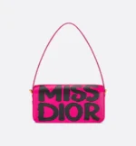 New for Winter 2024, the Miss Dior flap bag redefines House staples of modern elegance. Crafted in fuchsia calfskin, it features the black Miss Dior Graffiti motif, a nod to the 1967 debut ready-to-wear collection and a manifesto to Maria Grazia Chiuri’s hallmark celebration of feminism. It has a timeless aesthetic contrasted by a modern enamel plate with the Miss Dior Graffiti signature, while the flap reveals a main compartment completed by a zip pocket to accommodate all the essentials. Thanks to the adjustable strap, the bag can be worn over the shoulder for a contemporary and couture style.