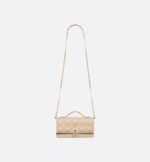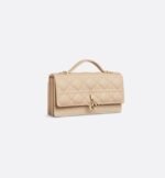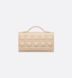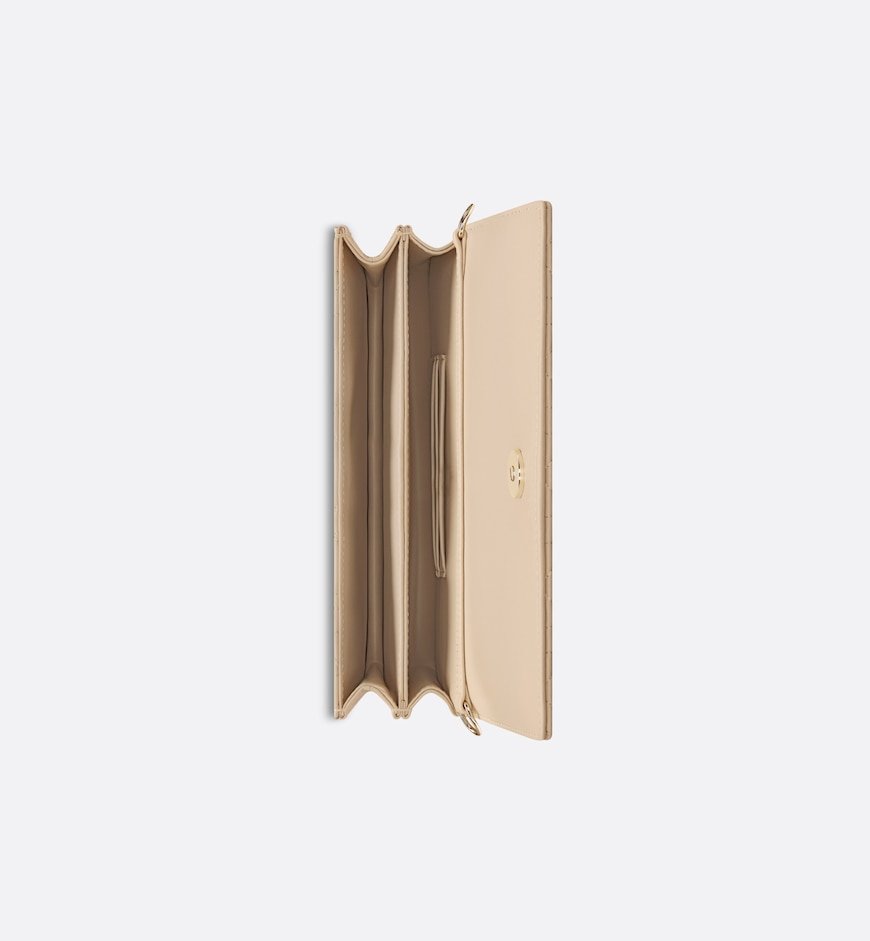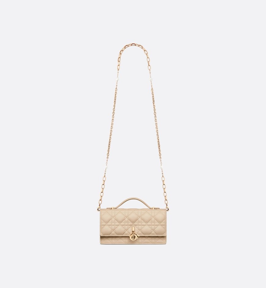 The My Dior mini bag elevates the line with an elegant and functional design. Crafted in powder beige Cannage lambskin, it features a flap enhanced by D.I.O.R. charms on the front. Equipped with compartments and card slots, the functional accessory holds all the essentials and is the ideal day and evening companion. A top handle completed by a removable chain punctuated with resin pearls allows the bag to be carried by hand or worn crossbody.