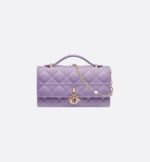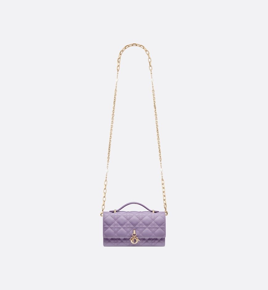 The My Dior mini bag expands the line with an elegant and functional design. Crafted in lilac Cannage lambskin, it features a flap enhanced by D.I.O.R. charms on the front. Equipped with compartments and card slots, the functional accessory will hold any essentials and is the ideal day and evening companion. A top handle completed by a removable chain punctuated with resin pearls allows the bag to be carried by hand or worn crossbody.