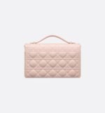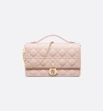 The My Dior Top Handle bag presents an elegant and functional design. The bag is crafted in powder pink lambskin with Cannage stitching and features a flap enhanced by D.I.O.R. charms as well as two compartments and a zip pocket to accommodate all the essentials, day or night. The signature Top Handle is completed by a removable chain strap with a leather insert, allowing it to be comfortably carried by hand, worn over the shoulder or crossbody.