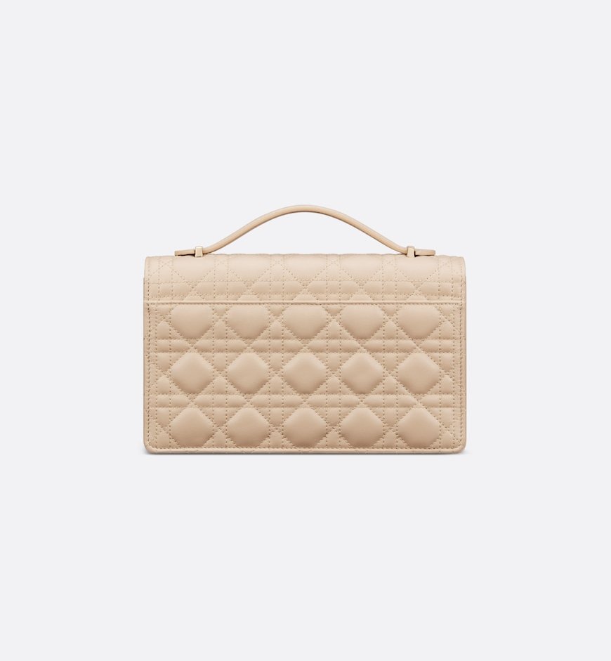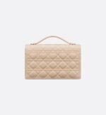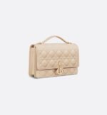 The My Dior Top Handle bag presents an elegant and functional design. The bag is crafted in powder beige lambskin with Cannage stitching and features a flap enhanced by D.I.O.R. charms as well as two compartments and a zip pocket to accommodate all the essentials, day or night. The signature top handle is completed by a removable chain strap with a leather insert, allowing it to be comfortably carried by hand, worn over the shoulder or crossbody.