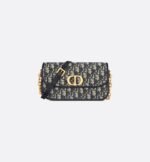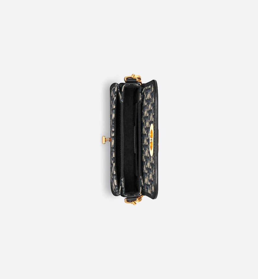 The 30 Montaigne Avenue bag enhances the hallmark line with a timeless and elegant style. Crafted in blue Dior Oblique jacquard, the rounded flap with delicate curves is punctuated by an antique gold-finish metal CD twist clasp inspired by the seal of a Christian Dior perfume bottle. The design is completed by other details, like the 30 Montaigne signature embossed on the back and the signature chain alternating gold-finish metal and enamel links. The small, gusseted bag features a refined silhouette that can be carried by hand, worn over the shoulder or crossbody.