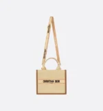 Maria Grazia Chiuri’s hallmark Dior Book Tote is presented in an elegant new variation. The refined beige raffia style is embroidered with the Dior Oblique motif and embellished with camel calfskin detailing. Designed to keep all the daily essentials organized, the cashmere leather interior is equipped with a zip pocket and slip pockets. Featuring an adjustable and removable strap and elevated by the Christian Dior Paris signature on the front, the practical small tote exemplifies Dior’s savoir-faire and can be carried by hand or worn over the shoulder.