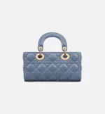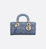 The Lady D-Joy bag captures the House’s vision of elegance and beauty by showcasing the iconic streamlined aesthetic of the Lady Dior line. Crafted in denim blue lambskin with Cannage stitching, the refined and timeless style is enhanced by pale gold-finish metal D.I.O.R. charms illuminating its silhouette. Featuring one detachable chain strap and another adjustable and removable leather strap, the small Lady D-Joy bag can be carried by hand, worn over the shoulder or crossbody as a daily companion.