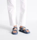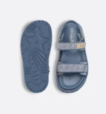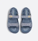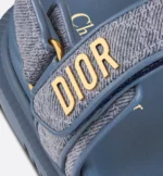 The Dioract sandal presents a modern silhouette revisited in blue denim with Cannage embroidery. The style features an anatomically shaped sole made with lightweight and comfortable leather. Self-fastening straps further enhanced by a gold-finish metal Dior signature on the upper strap complete the design. The sandal will lend a contemporary touch to any look.