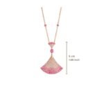 The Divas’ Dream necklace embodies Italian elegance and unleashes feminine power with a mysterious and unforgettable temperament. The charming and exquisite jewelry is decorated with a fan-shaped pattern, inspired by the mosaic decoration of the Baths of Caracalla in Rome, and highlights the historical origins of Bvlgari and the “Eternal City” Rome with modern fashion design and the brilliance of precious gemstones.