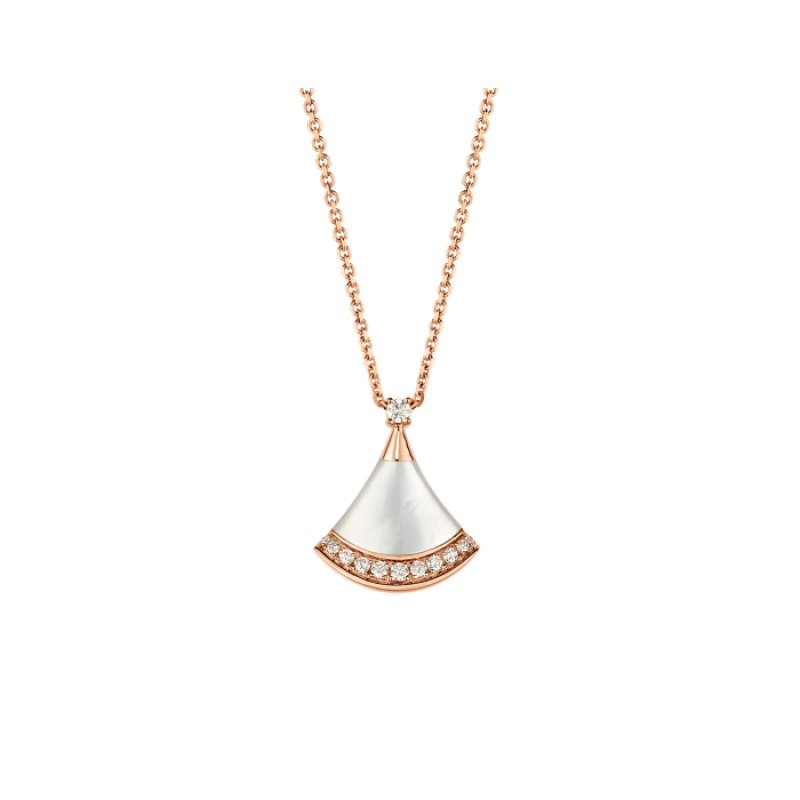 Divas’ Dream necklace in 18K rose gold, diamonds and mother-of-pearl, decorated with pavé diamonds.