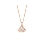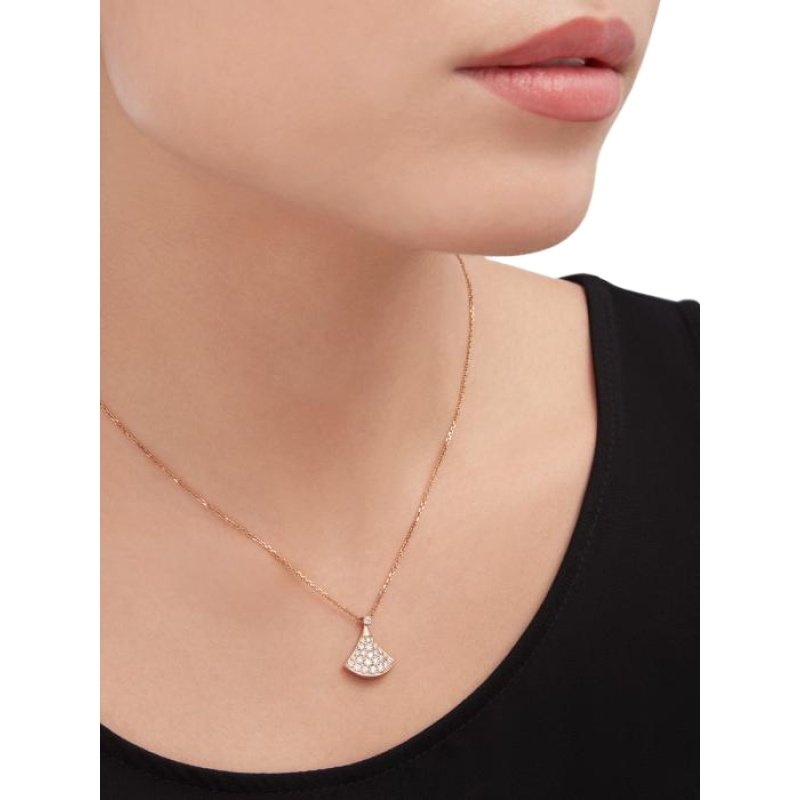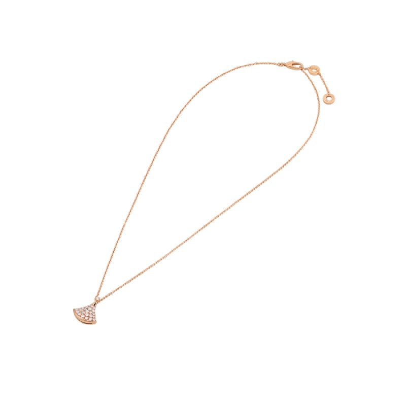 Inspired by feminine elegance and the allure of the Eternal City, the Divas’ Dream necklace pays tribute to the most fascinating women with a unique Roman spirit. Feminine and refined, this necklace captures the beauty of the marble of the Baths of Caracalla and the curves of the fan-shaped mosaics, the true essence of Italian beauty. Divas’ Dream necklace in 18K rose gold with pavé diamonds. Length 16-17 inches (41-43 cm).