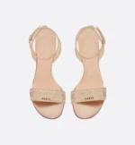 The Dway heeled sandal elegantly reimagines one of the House’s hallmark creations. Crafted in cotton embroidered with metallic thread and further adorned with gold-tone strass, it is distinguished by delicate straps showcasing an embroidered Christian Dior Paris signature on the upper. Completed by an 11-cm (4.5-inch) heel, the exceptional shoe is ideal for formal attire.