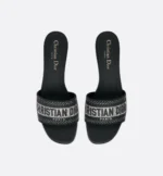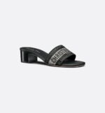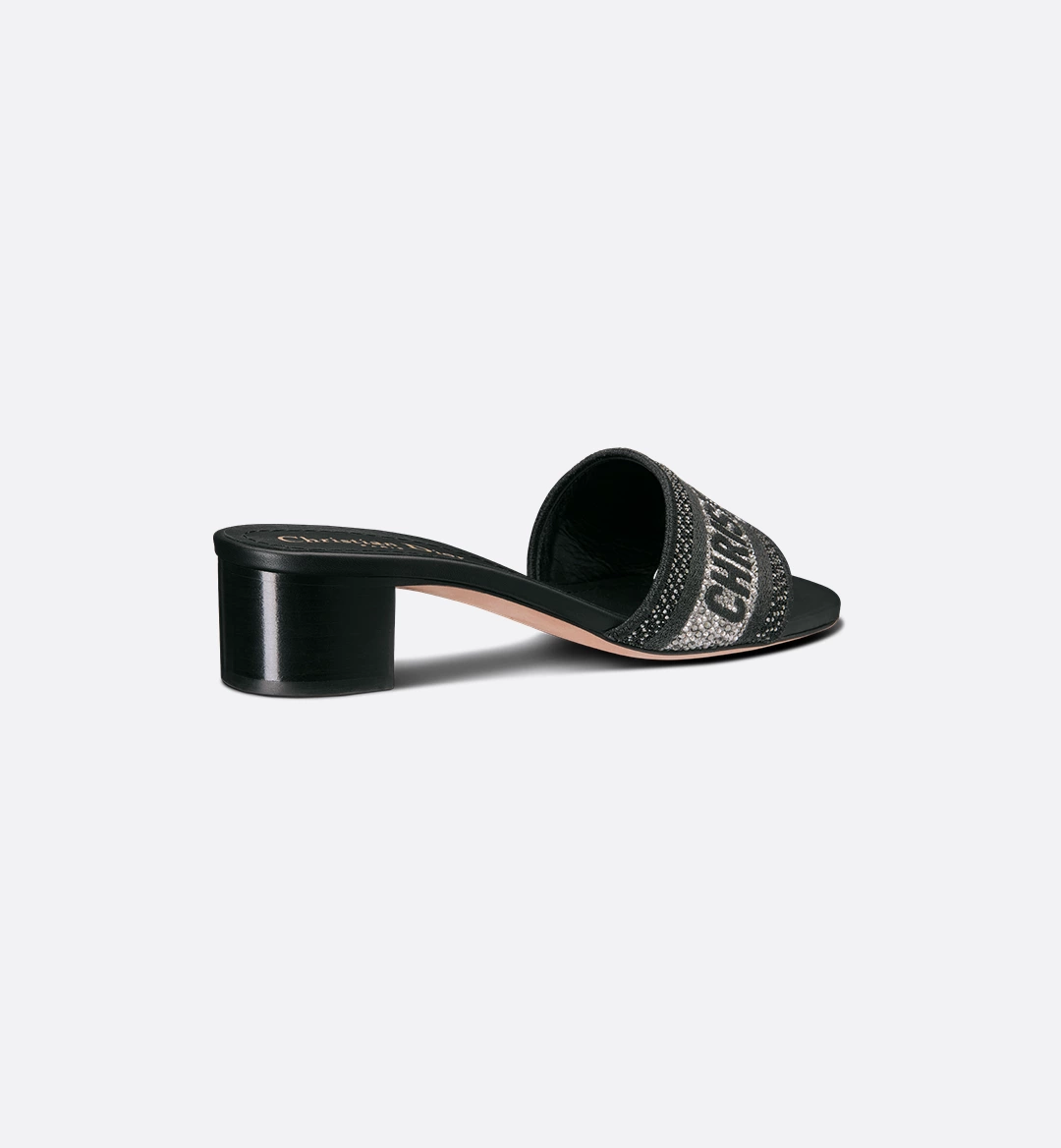 The Dway heeled slide has a hallmark and timeless style. The design is offered in an elegant variation of black cotton embroidered with metallic thread and silver-tone strass. The embroidered upper boasts a ‘CHRISTIAN DIOR’ signature and makes it instantly stand out. Completed by a 4 cm (1.5) block heel, the heeled slide will lend a touch of modernity to any outfit.