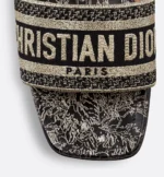 The hallmark Dway heeled slide features the black and gold-tone Dior Chardons motif by Pietro Ruffo, showcasing Scotland’s emblematic flower, symbolizing protection, resilience and liberty. The upper, punctuated with gold-tone metallic thread, is embroidered with the Christian Dior Paris signature for an instantly recognizable touch, while the square toe accentuates its contemporary appeal. Completed by a 3.5-cm (1.5-inch) cylindrical heel, the slide will add a modern touch to any outfit and will pair with other Dior Chardons creations from the collection.