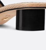 The hallmark and timeless Dway heeled slide features Pietro Ruffo’s multicolor Toile de Jouy Papillon motif, showcasing delicate butterflies in an elegant and dreamlike floral setting. The natural raffia upper embroidered with a black Christian Dior Paris signature lends an unmistakable touch, while the square toe adds modern appeal. Completed by a 3.5-cm (1.5-inch) cylindrical heel, the slide will lend a contemporary edge to outfits and can be coordinated with other Toile de Jouy Papillon creations from the collection.