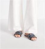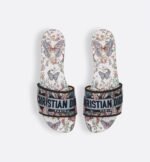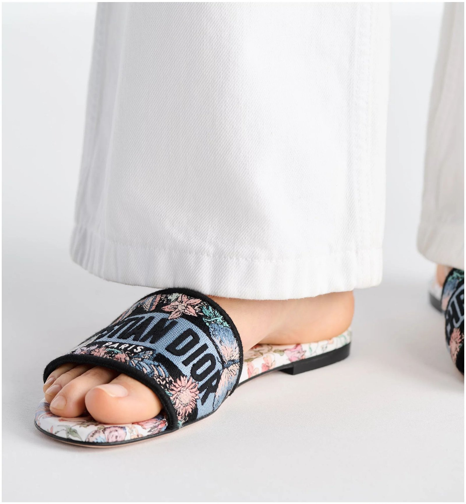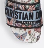 The Dway slide, a hallmark and timeless style, features the white multicolor Toile de Jouy Papillon motif, Pietro Ruffo’s dreamlike and delicate butterfly and flower design. The cotton upper is embroidered with the Christian Dior Paris signature for an unmistakable touch. Its streamlined silhouette makes it easy to slip on to complete a relaxed look that will pair well with other Toile de Jouy Papillon creations from the collection.