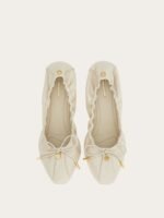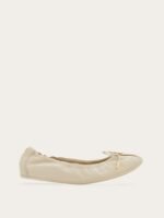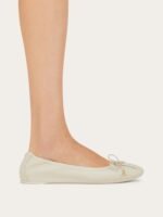 Like a glove. This season’s new take on the ballet flat is designed with both comfort and style in mind. Cut from sumptuous nappa leather, this iteration has a padded insole enhanced with a 1cm wedge, while the gathered upper holds the foot securely for a glove-like fit. Across the toe, a mini bow with custom aglets is secured via a Gancio buckle, and the slightly squared tip offers ease of movement with a contemporary appeal. Easy to fold and carry as a second pair in the custom dust bag.
