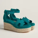Espadrille in suede goatskin with ‘H’ cut-out detail and wedged rope heel.