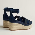 Espadrille in denim and goatskin with ‘H’ cut-out detail and wedged rope heel.