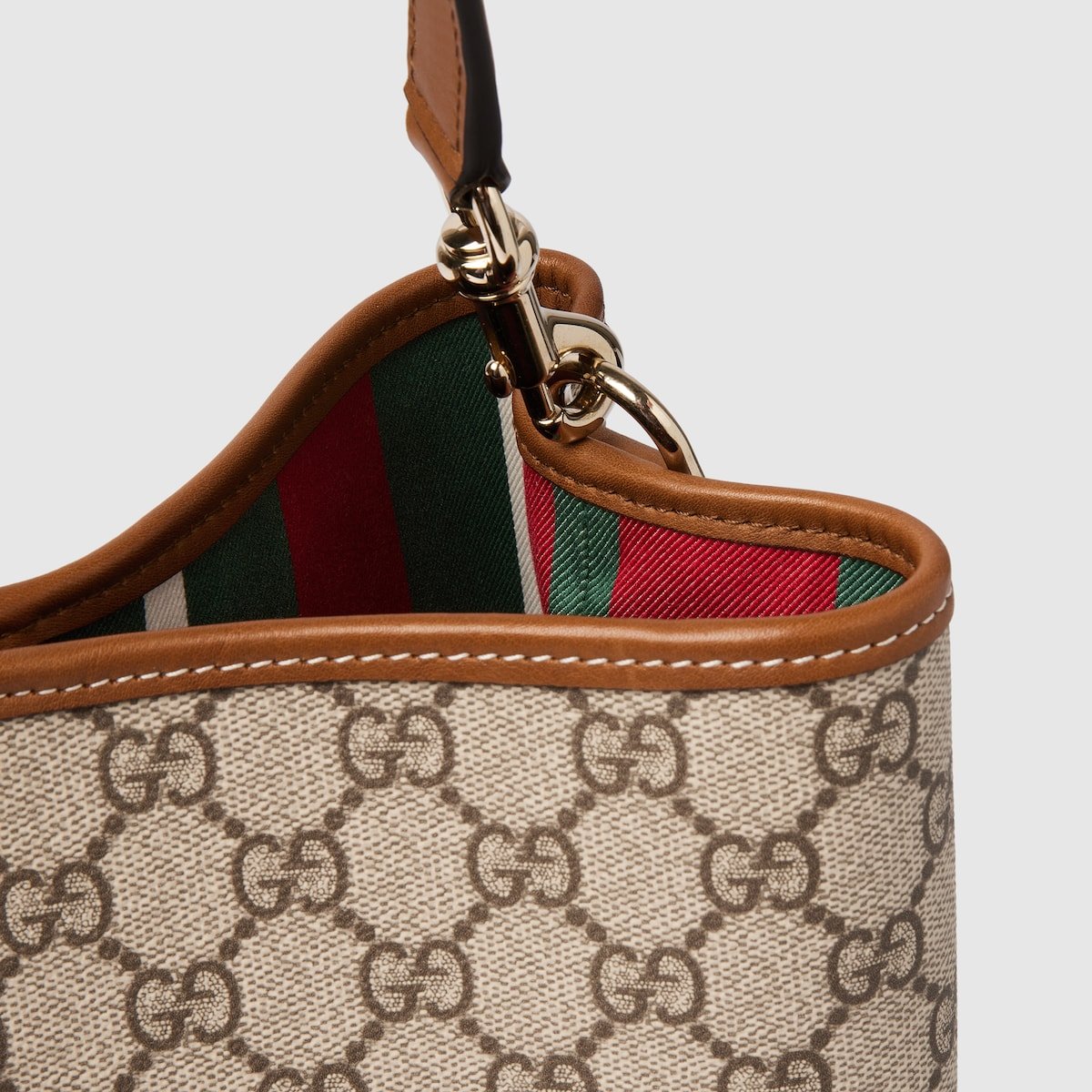 The new GG Emblem collection reinterprets the House??s history of elegance and craftsmanship. This small shoulder bag highlights a functional design with two main compartments in Web cotton lining and a zip pocket in the middle.