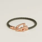 Swift calfskin and metal braided bracelet with stirrup-shaped clasp inspired by Herm??s’ equestrian heritage.