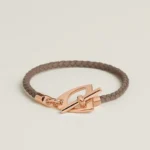 Swift calfskin and metal braided bracelet with stirrup-shaped clasp inspired by Herm??s’ equestrian heritage.