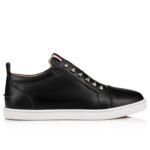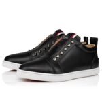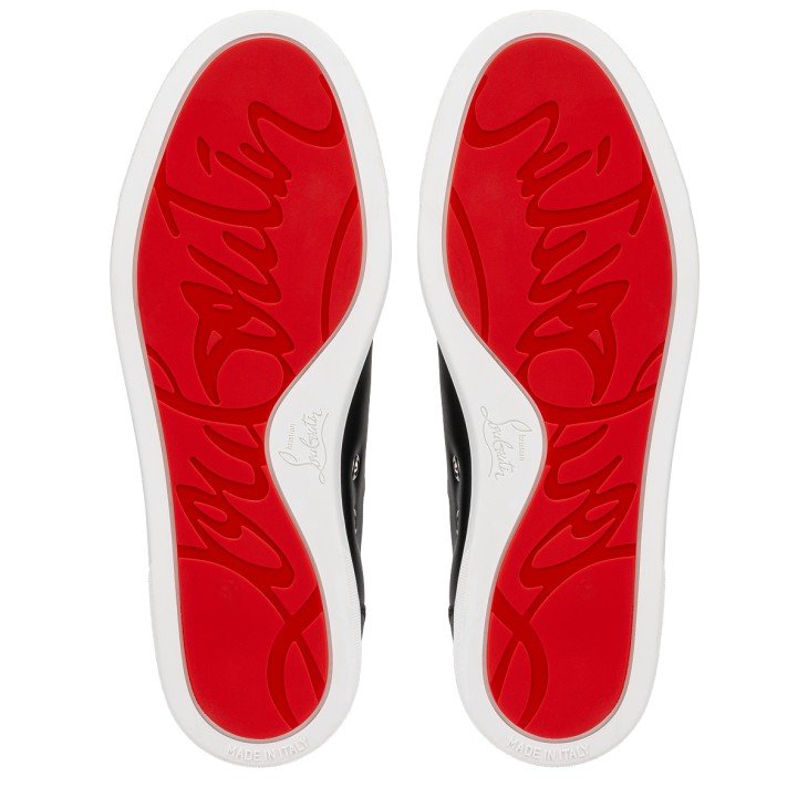 The timeless F.A.V Fique A Vontade low-top sneaker enchants with its elegant details. This sneaker is crafted in black calf leather and has a white rubber sole. It is embellished with tonal topstitching and signature silver spikes for an urban, modern finish. The tongue bears the Maison Christian Louboutin signature.