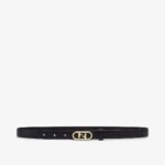 Narrow belt with loop and Fendi O??Lock stud buckle. Made of black leather. Gold-finish metalware.