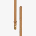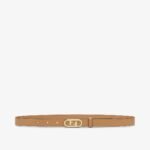 Narrow belt with loop and Fendi O??Lock stud buckle. Made of beige leather. Gold-finish metalware.
