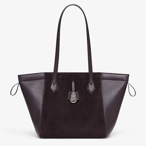 Medium Origami Bag. The style recalls the duality and creativity of Fendi with an innovative and transformable design:the ingenious closure with eight magnets means the bag can be folded, origami-style, transforming it from a bucket bag, when the magnets come together in the middle with a magic clasp, into a shopper by gently pulling the leather ties on the short shoulder straps on each side.