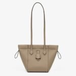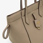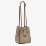 Mini Origami bag made of dove grey full-grain leather. The style recalls the dual nature and creativity of Fendi with an innovative design that can be transformed:the ingenious closure with eight magnets means the bag can be folded, origami-style, transforming it from a bucket bag – when the magnets come together in the middle with a magic clasp – into a shopper by gently pulling the short shoulder straps on each side.