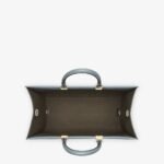 Features a spacious lined internal compartment, edges in tone-on-tone leather, and gold-finish metalware.