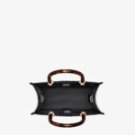 Small Sunshine Shopper bag made of black leather with hot-stamped FENDI ROMA lettering and stiff tortoiseshell plexiglass handles.