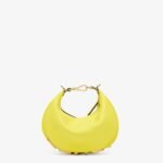 Mini hobo bag made of soft, acid yellow leather, embellished with vintage gold metal FENDI lettering.