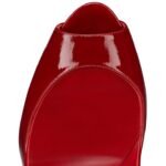 Maison Christian Louboutin’s Fetish Peep is a daring pump that creates an impression. From the sexy, pointy metallic toe, inspired by a sharp thorn, to the spikey 150 mm heel, this shoe dares to be different. Crafted in patent leather in Loubi red, the dramatic V-shaped closed toe d??collet?? elongates the foot. Finished with a Loubi red sole, this is a dramatic shoe that will make an entrance. The ‘Vog patent leather’ material, being more flexible, offers better suppleness. Its wrinkled effect may have slight variations between the photo and the product.