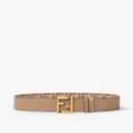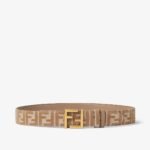 Reversible belt with loop and iconic FF stud buckle. Made of beige leather on one side and denim-effect FF jacquard in beige and white on the other. Gold-finish metalware.