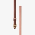 Reversible belt with loop and diagonal FF stud buckle. One side is brown leather the other is in pink with embossed FF motif. Gold-finish metalware.