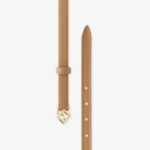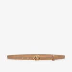 Narrow belt with loop and diagonal FF stud buckle. Made of beige leather. Gold-finish metalware.