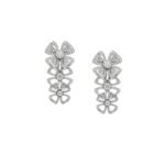 Blooming in the Eternal City of Rome, the Fiorever collection draws its design inspiration from the charming four-petal flower cherished by the Romans as a symbol of happiness and joy. Made up of two words rich in meaning:Fiore (flower in Italian) and forever (eternity in English), Fiorever celebrates the Romans’ love of life with a passionate, free-spirited design. Precious, classic floral motifs are presented in a corolla of high-quality diamonds, which shine with everlasting brilliance. Fiorever 18K white gold pendant earrings set with 6 round brilliant-cut diamonds and embellished with pavé diamonds.
