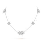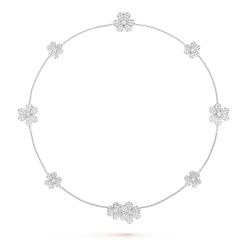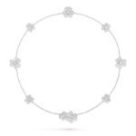 Frivole necklace, 9 flowers, rhodium plated 18K white gold, round diamonds; diamond quality DEF, IF to VVS.