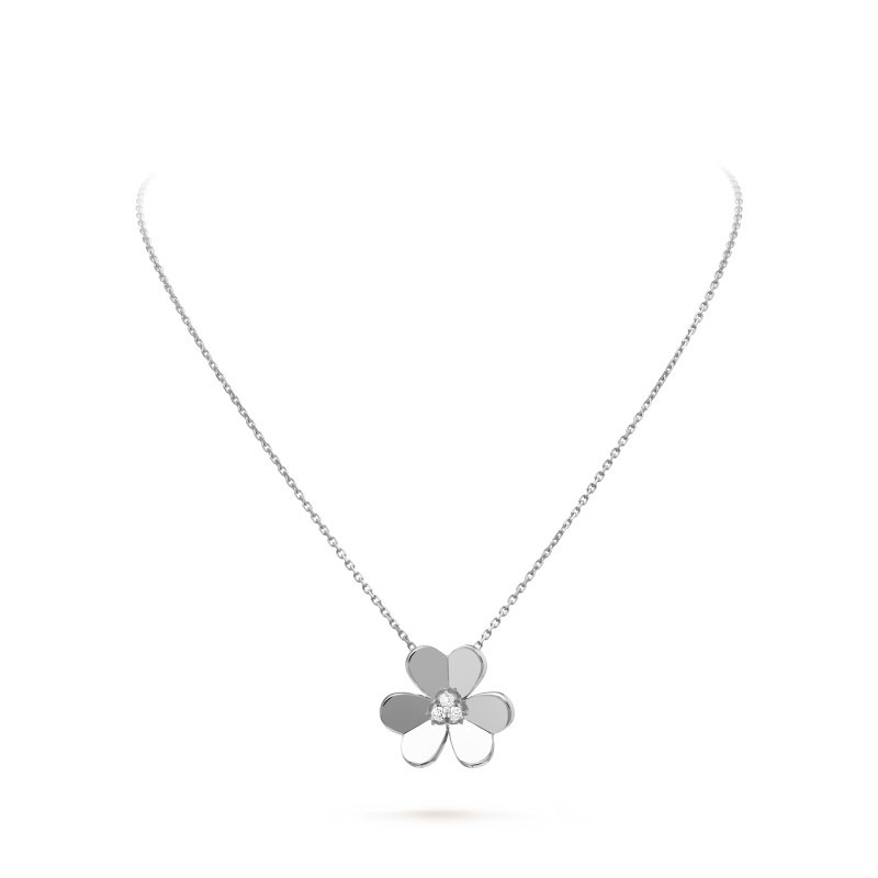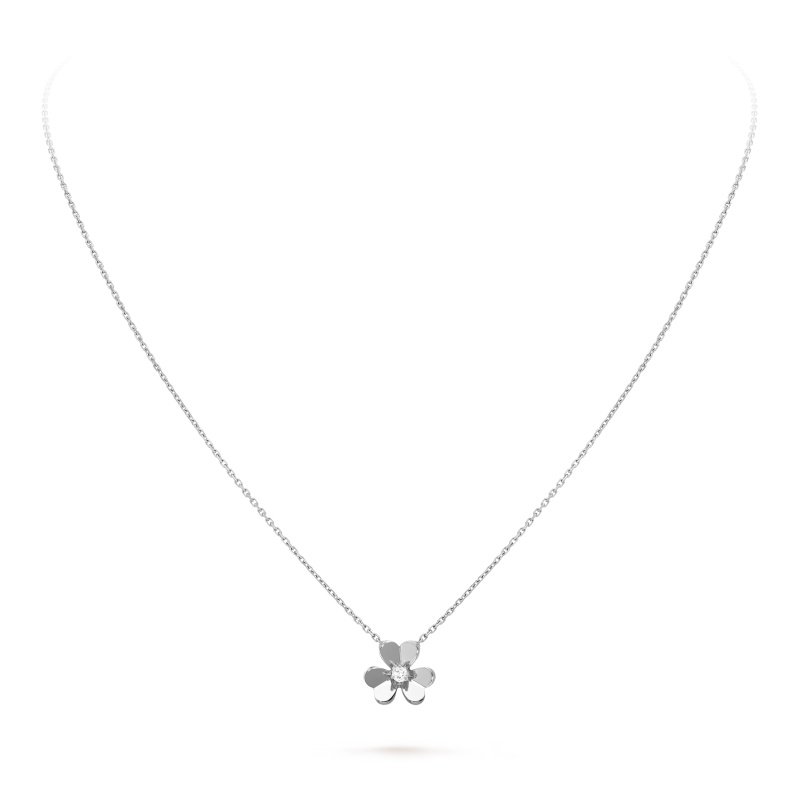 Frivole pendant, mini model, rhodium plated 18K white gold, round diamond; diamond quality DEF, IF to VVS.The pendant is attached to the necklace’s chain