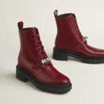 Ankle boot in glazed calfskin with functional palladium-plated Kelly buckle and notched sole.