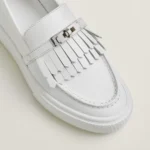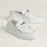 An elusive icon, the Kelly buckle always appears where it’s not expected. It slips freely from a bag to a shoe, repeatedly featured on boots, mules, loafers or sandals. Whether in gold, platinum, metal, or leather, in mini or maxi formats, it’s available in multiple styles for an endless number of bold looks.