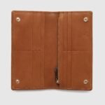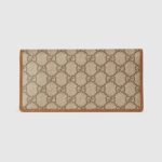 The GG Emblem collection reinterprets signature motifs through creativity and innovative functions , and is envisioned to be cherished for years to come. Introduced in the latest line of small accessories, this beige and dark brown continental wallet is crafted from the new GG Monogram fabric. The design features an embossed Gucci on the front and a D-ring for attachments.