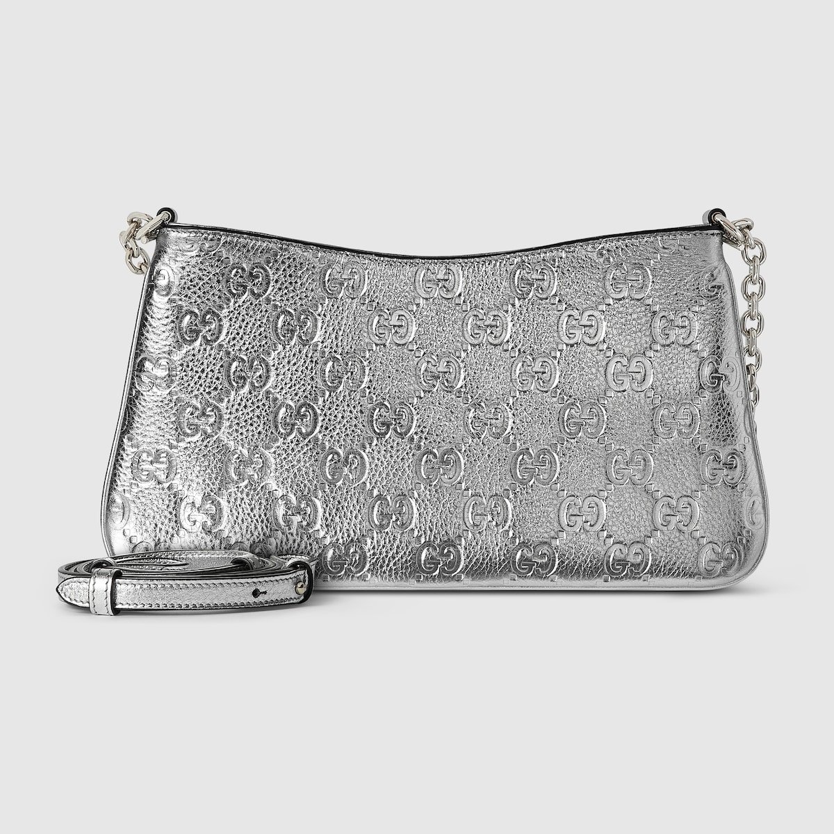 Silver metallic GG grainy leather