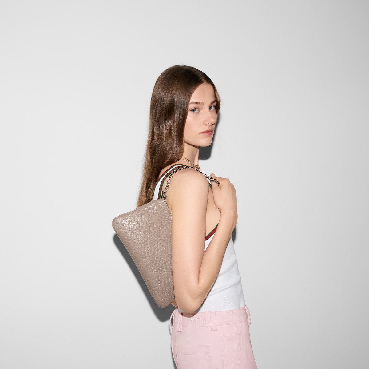 Taupe GG grainy leather
