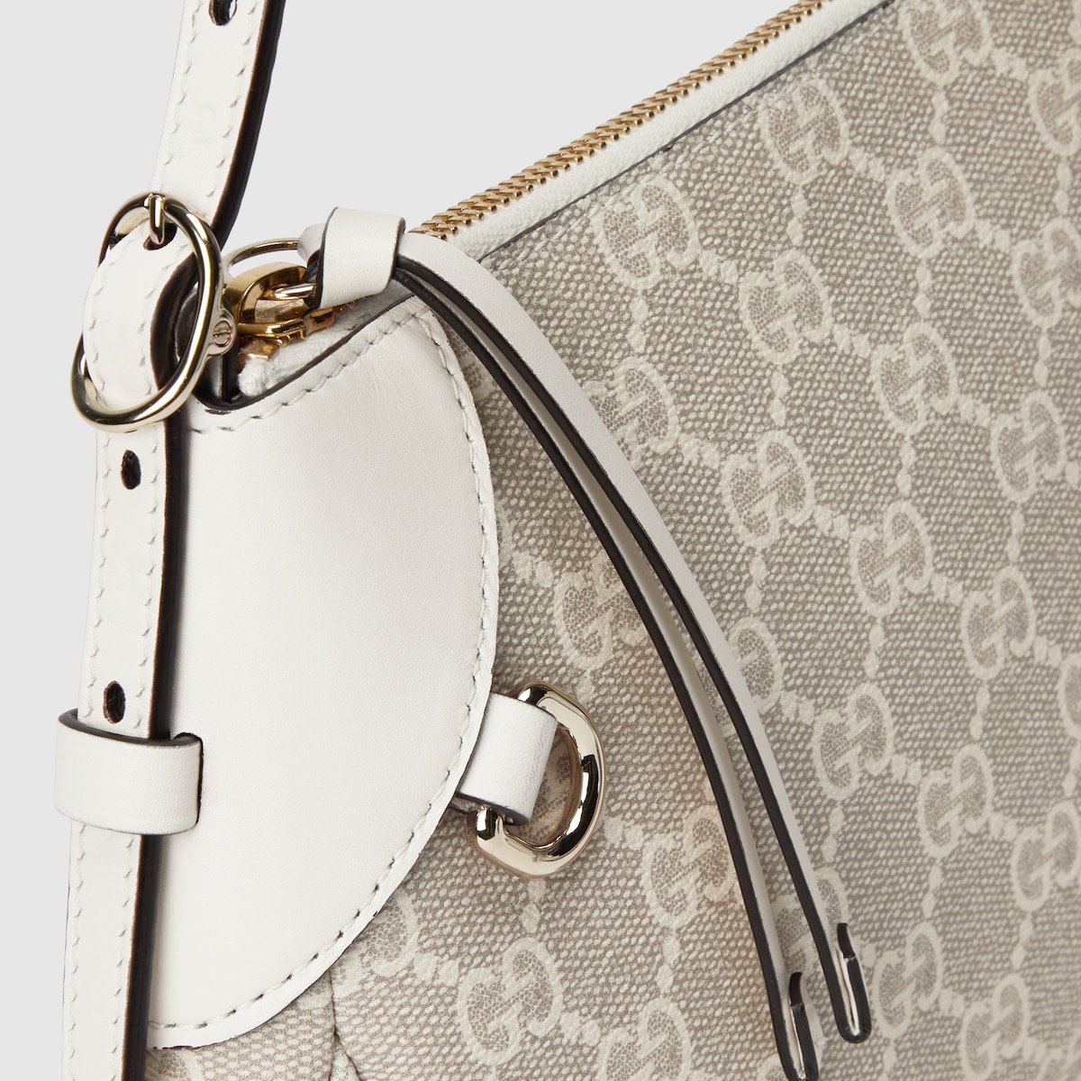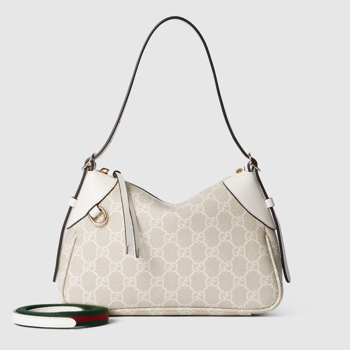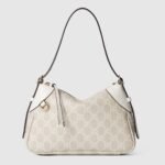 The new GG Emblem collection reinterprets the House??s history of elegance and craftsmanship. This small shoulder bag features numbered notches on the adjustable shoulder strap, inspired by the equestrian world.